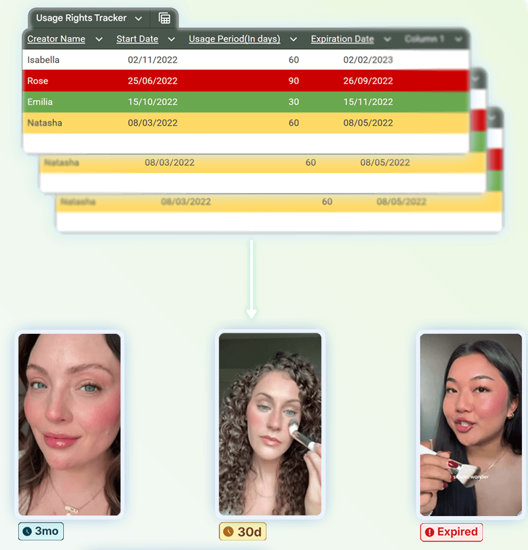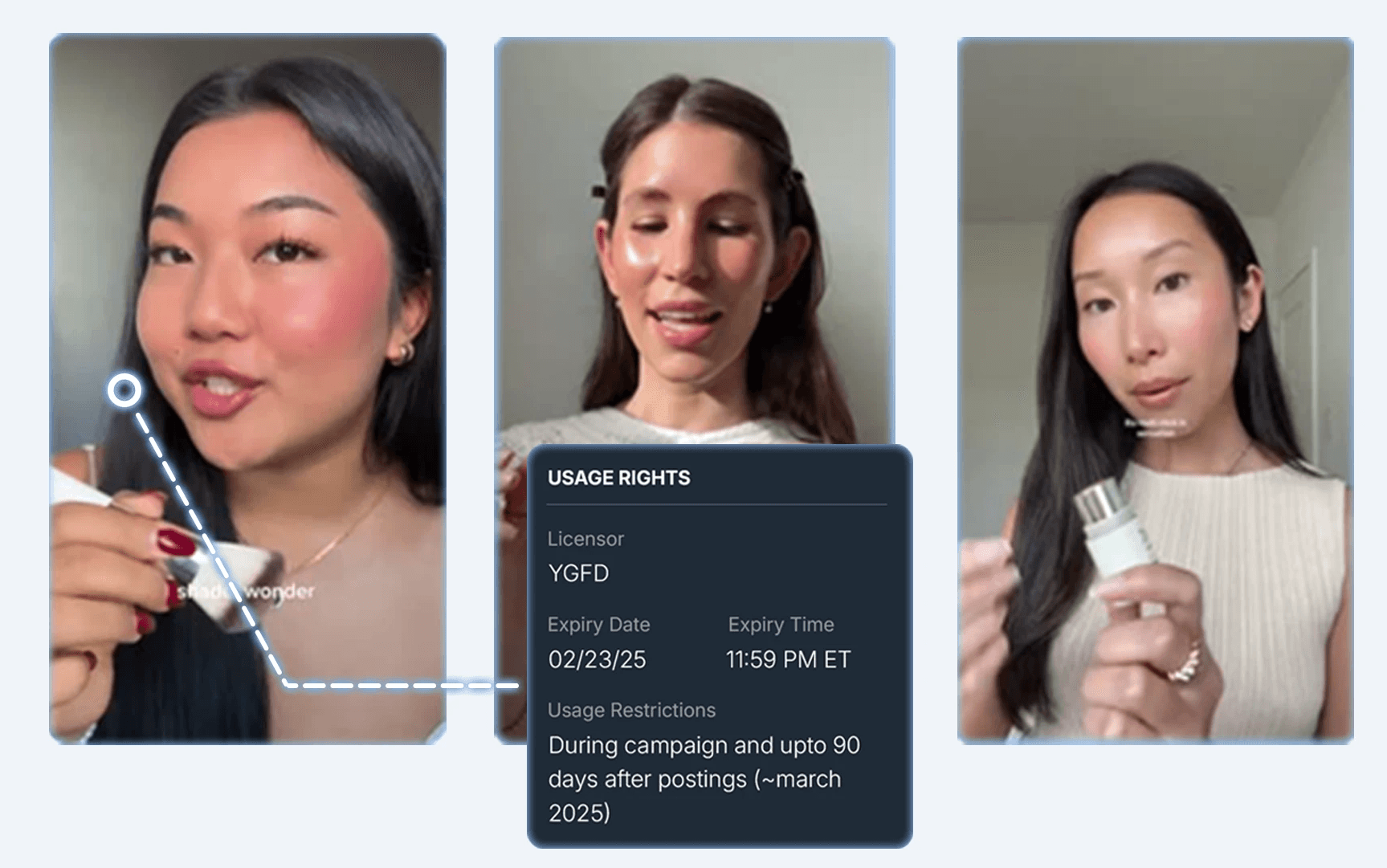 Receive proactive alerts long before a creator's license expires, giving you time to renew contracts or phase out assets without disrupting live campaigns.