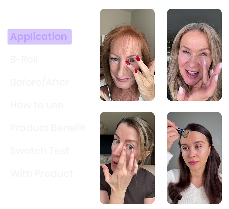For Anti-Aging Beauty brands, organizing by ad shot means launching new variations 3x faster. By instantly finding every 'Application' clip, from serum droplets to smooth skin reveals, they combat ad fatigue effortlessly.