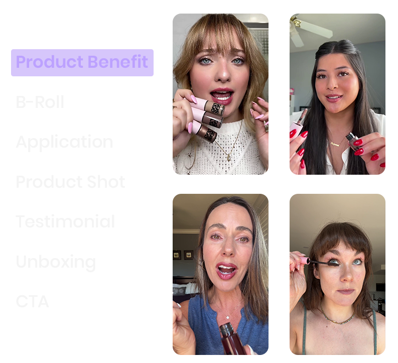 Every ad shot below is drawn from real clean beauty brand data. These aren't generic templates—they're the actual building blocks winning brands use to maximize footage reuse.