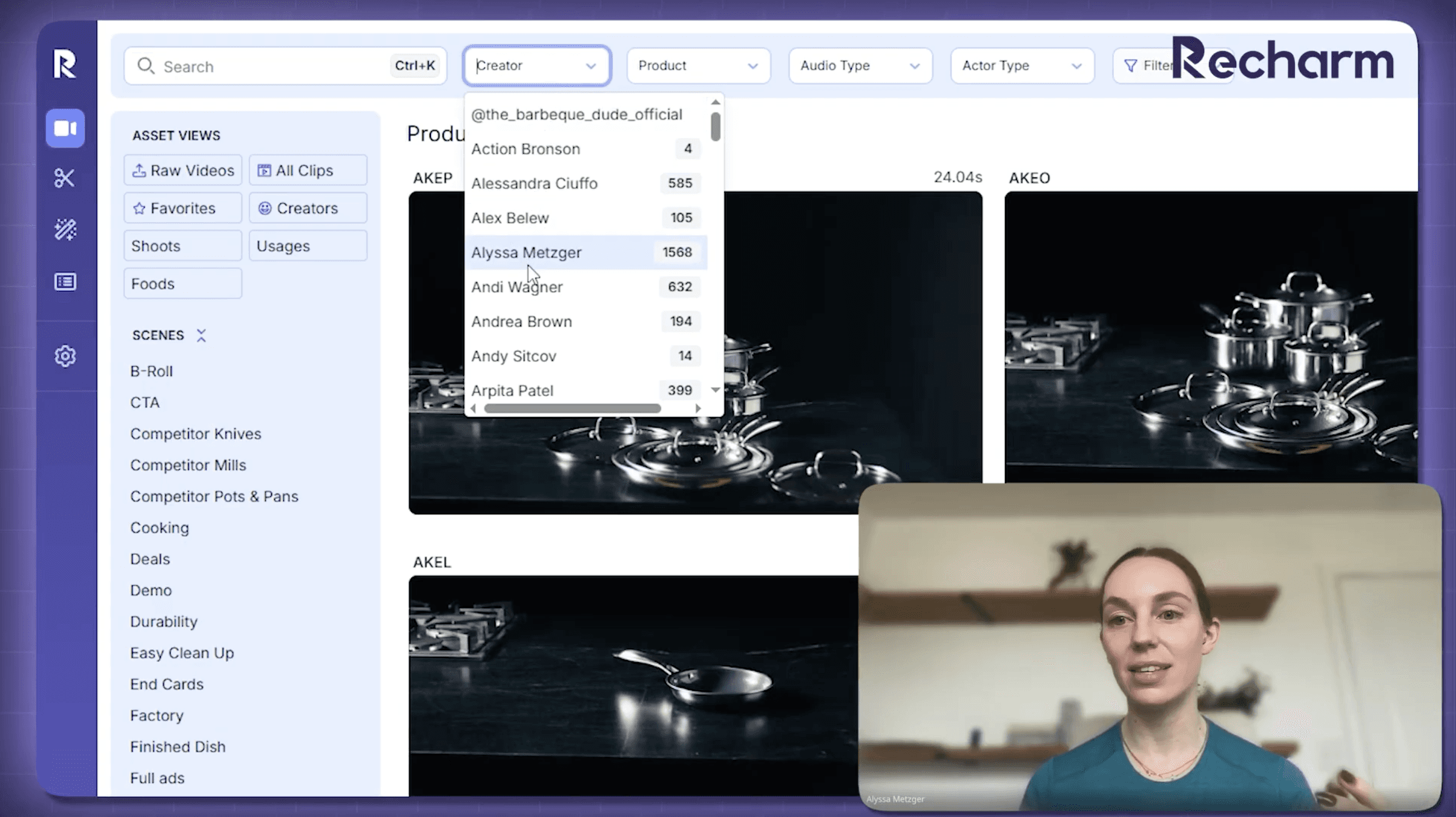 HexClad uses Recharm to search a massive footage library, craft briefs, and empower editors. This efficiency gain cut their briefing-to-sourcing workflow from 60 minutes down to 20, enabling them to triple their creative output and avoid visual burnout.