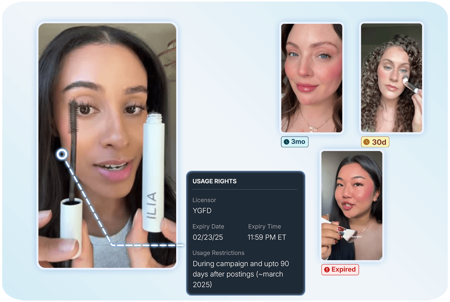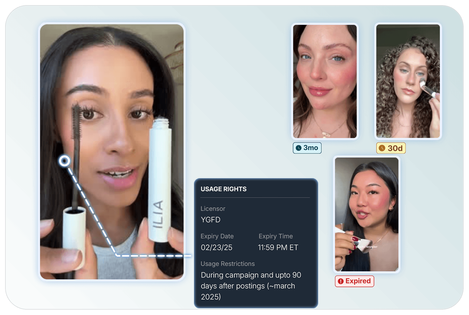 Receive proactive alerts long before a creator's license expires, giving you time to renew contracts or phase out assets without disrupting live campaigns.