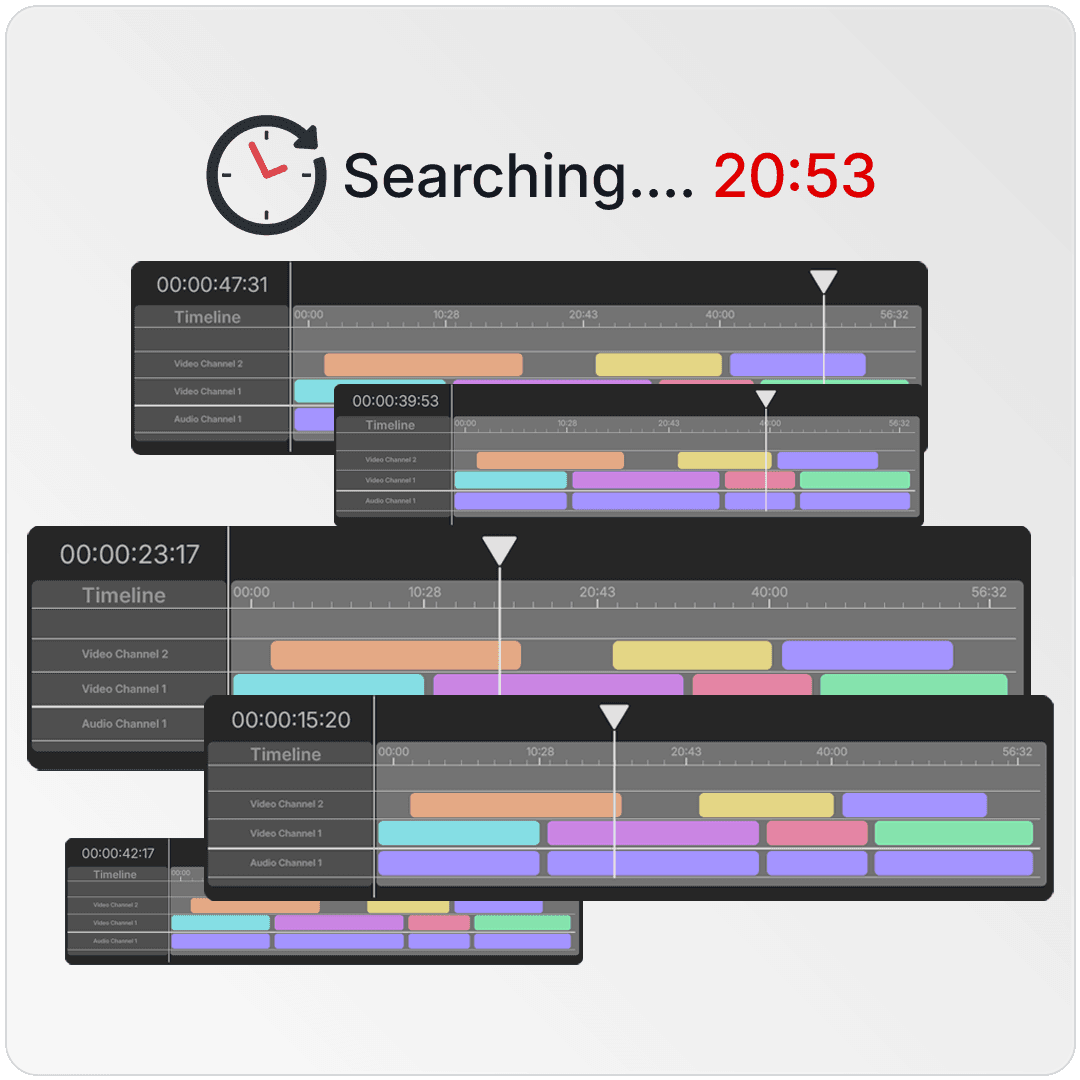Editors constantly open videos and scrub through timelines just to find one usable moment. This repetitive searching slows production and drains creative energy.