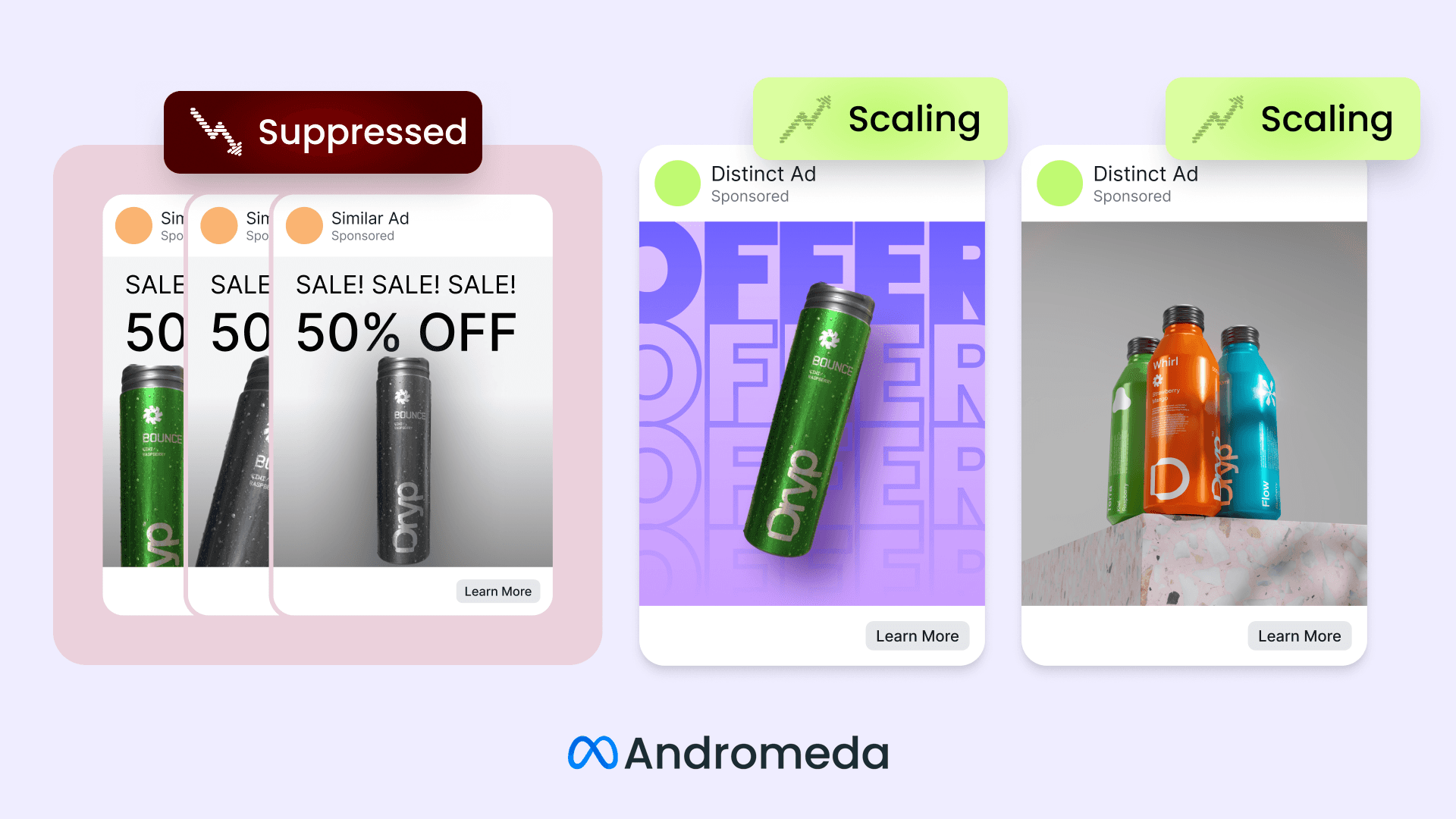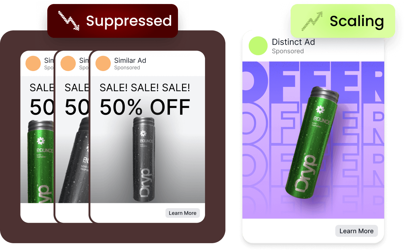 Recharm helps teams create visually and thematically distinct ads, increasing the chances of entering Meta’s retrieval system.